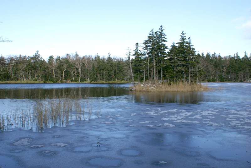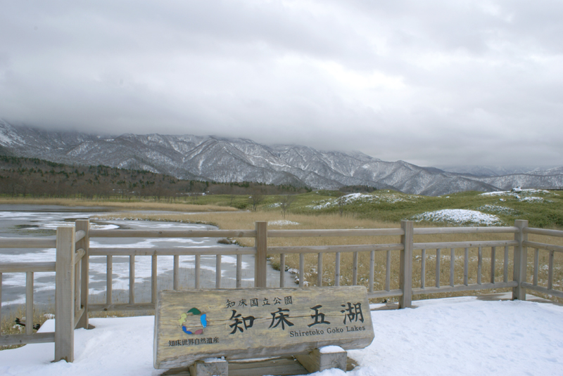 ただし、雪景色の林、凍った湖、煙る知床連山峰…