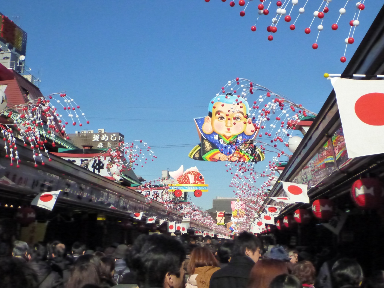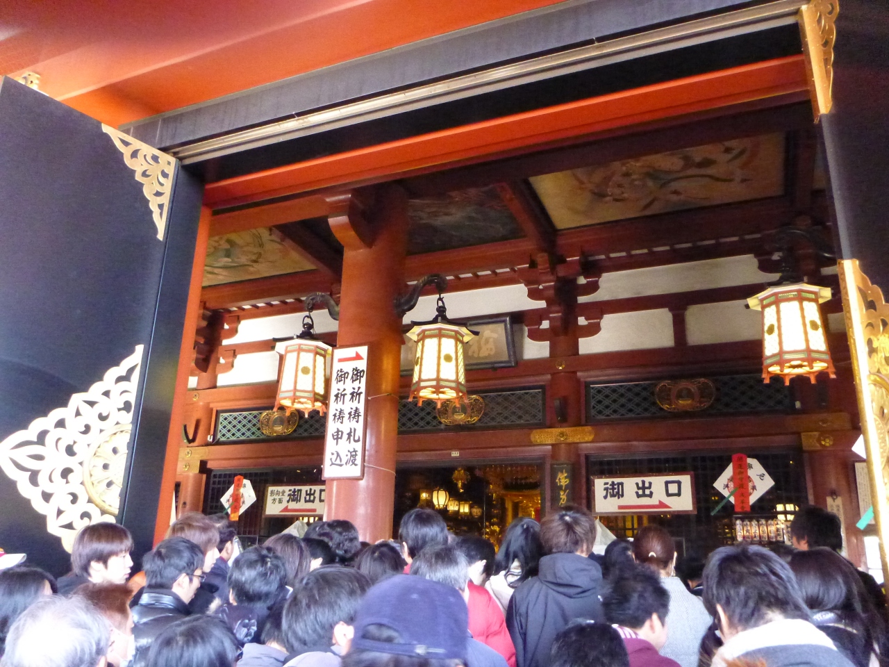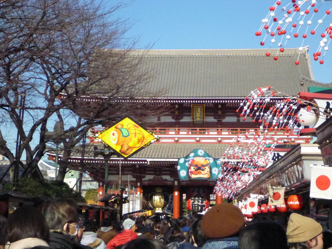 天気も非常によく、横にはスカイツリーが見事に見えましたが、もちろんのこと、大変な混雑で、列の最後尾は雷門よりかなり先まで続いていていました。