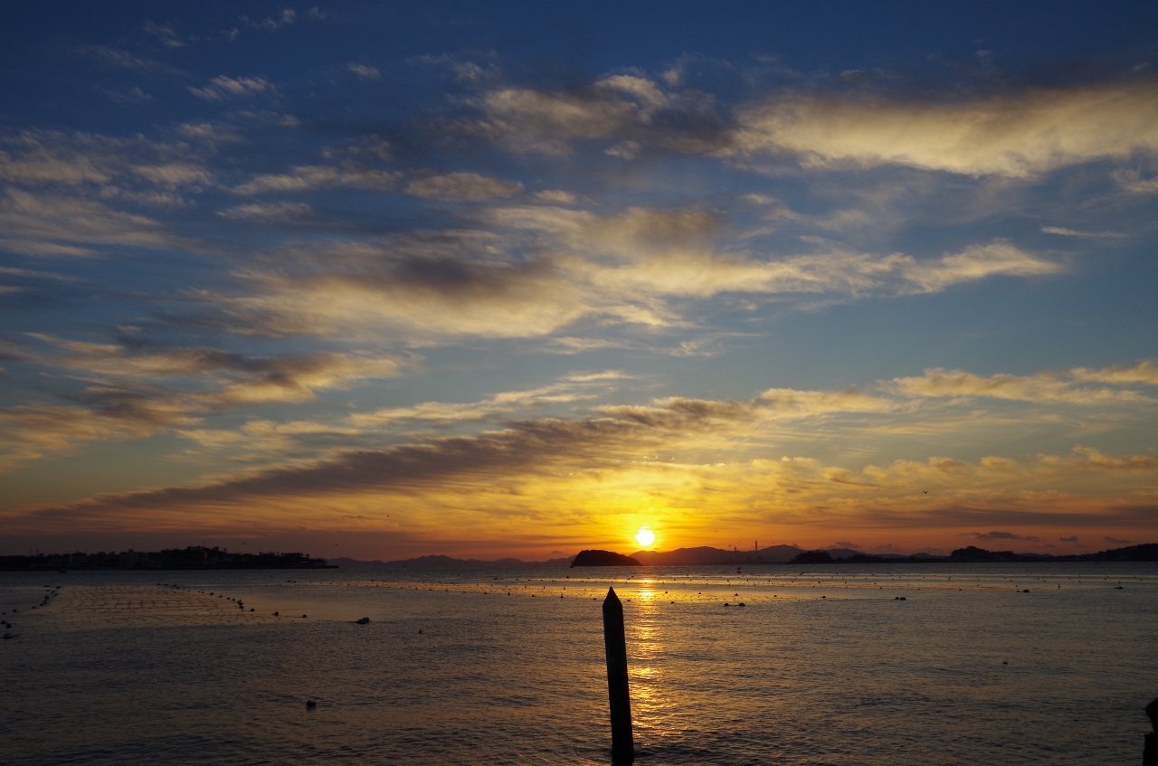 日の出の方角には渥美半島があるので、完全に海からの日の出ではなかったです。