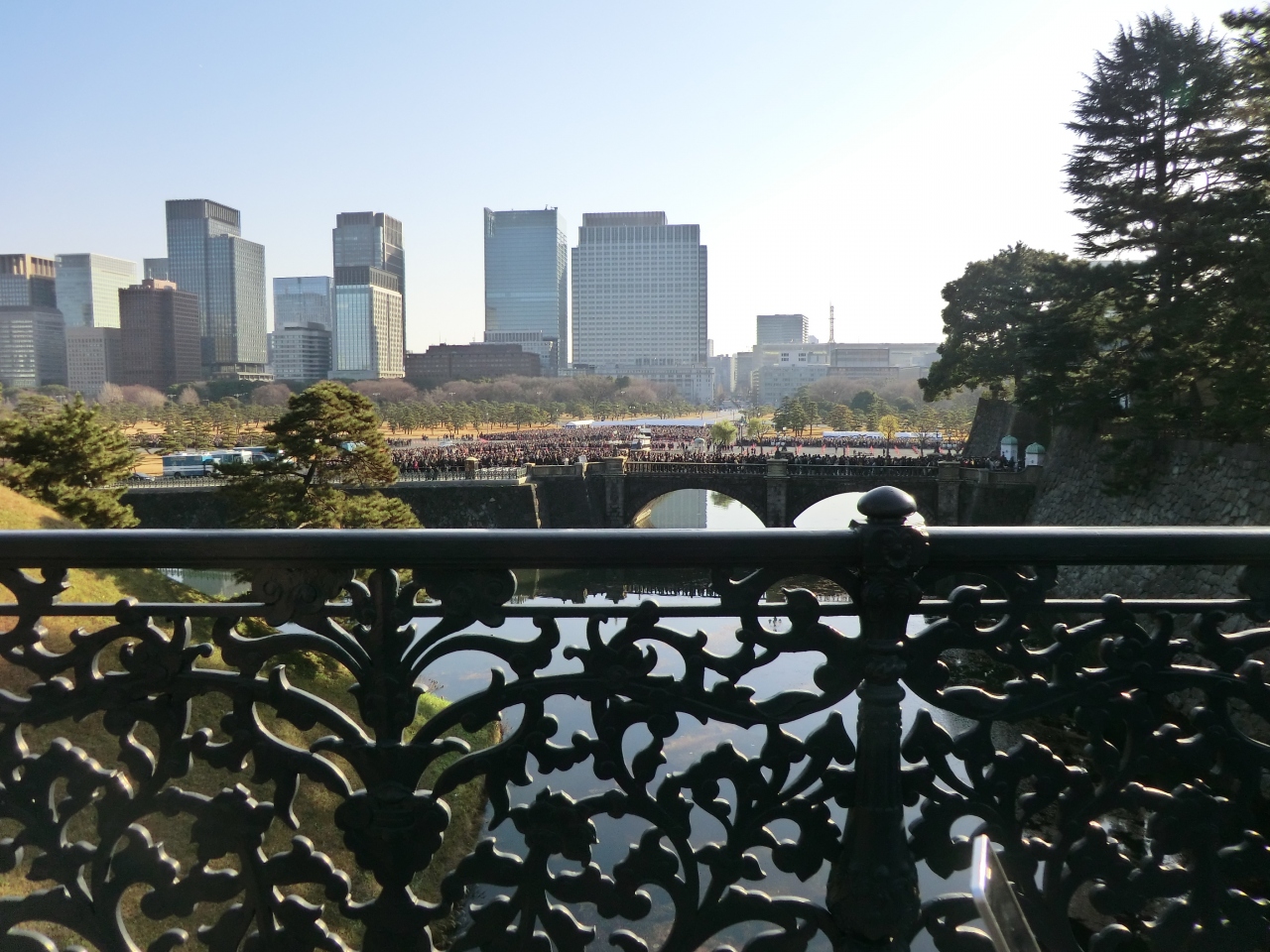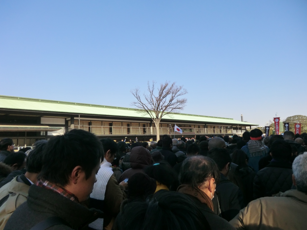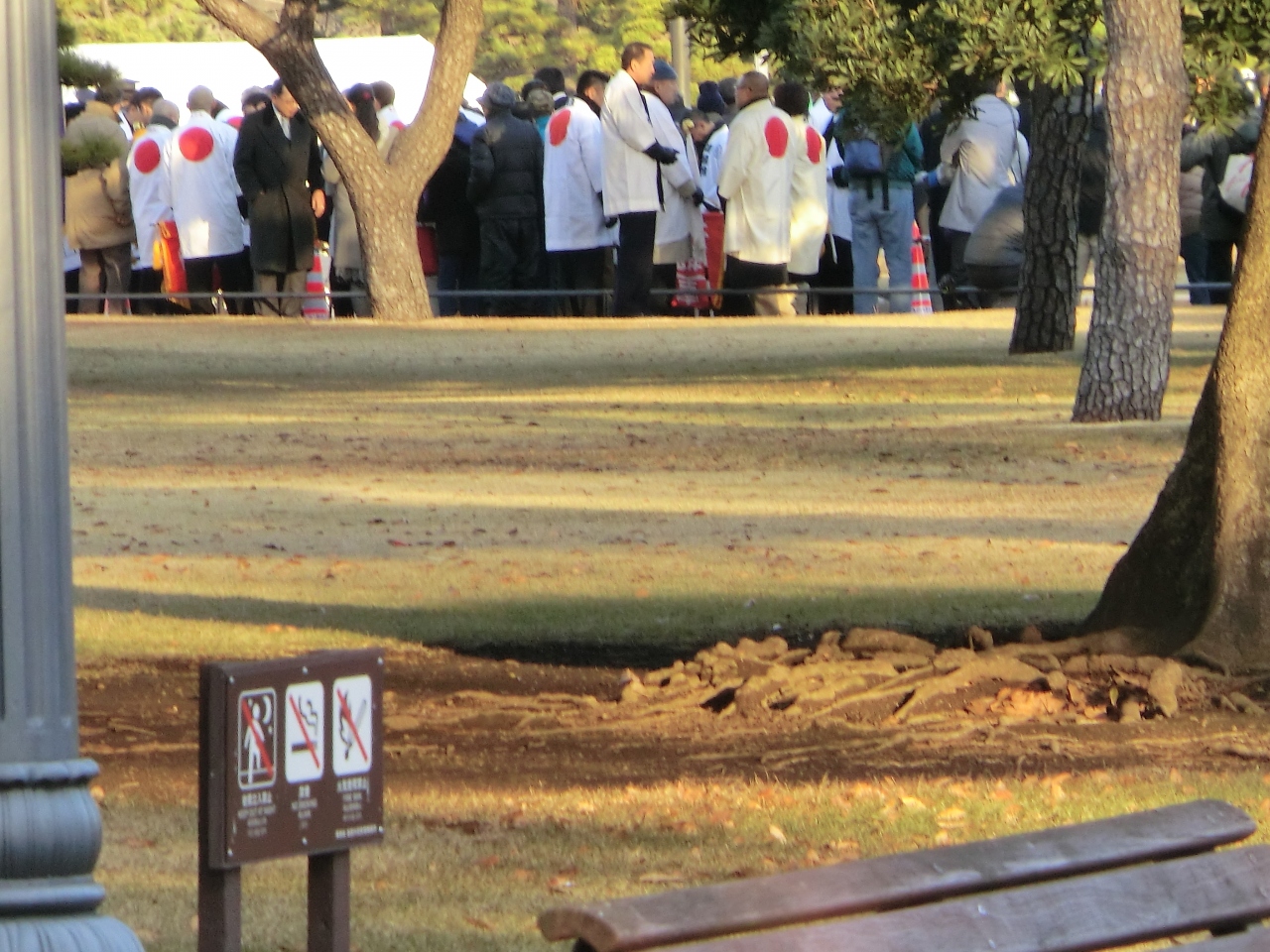場所 外堀通りと内堀通りの中間 二重橋正面 第二列 午前零時から並んでいた人達の次のグループとなる。