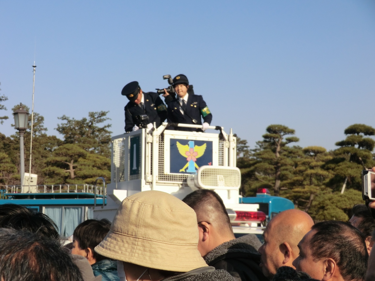 一月二日午前7時ー7時半ごろ 第一回目天皇陛下左右の位置第一列目が確保される。