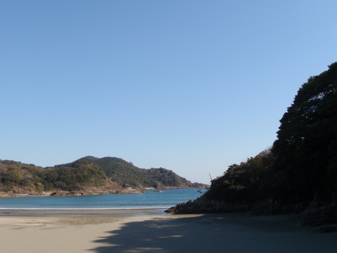 国道10号からそれ日向岬方向に向かうと、岬の付け根に伊勢ヶ浜公園はあります。この公園は伊勢が浜海水浴場に隣接する公園で、目の前に幅300メートルほどのビーチが広がっています。宮崎県内でも屈指の透明度を誇る海水浴場で夏場には多くの家族連れで賑わいますが、私が訪れた1月は人影も少なく天気が良くてもちょっとさびしい雰囲気でした。