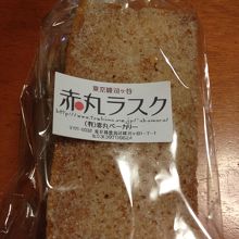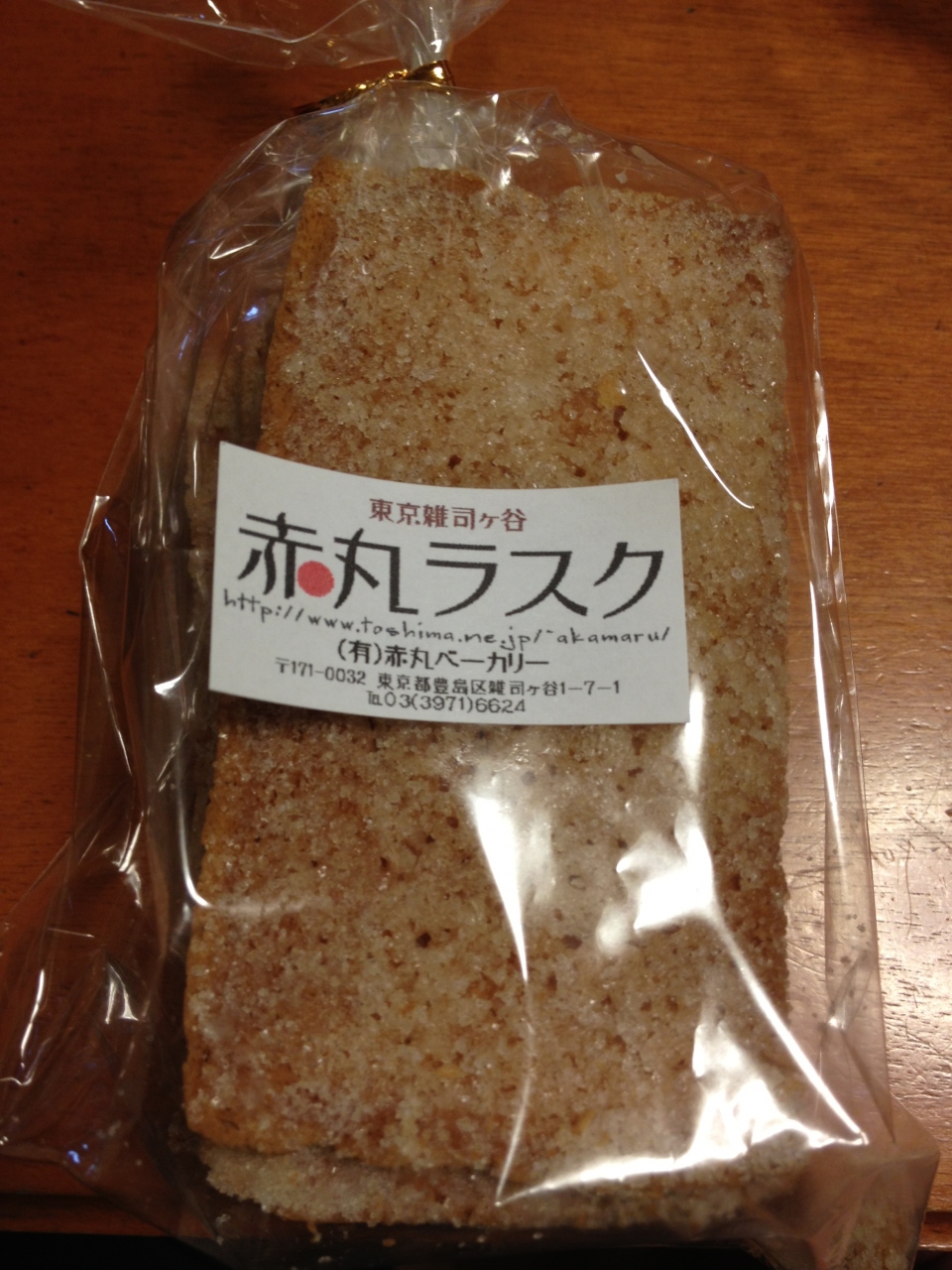 赤丸ベーカリー (アカマルベーカリー)は、東京雑司ヶ谷のパン屋さんです。手作りパンを食べる事ができます。特におすすめは、このラスクですね。自慢の食パンに、北海道バターを塗り、グラニュー糖をまぶしただけのシンプルなラスクですがおいしです