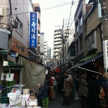 築地市場の外側にある市場で、最近では観光化がより進んでいます。