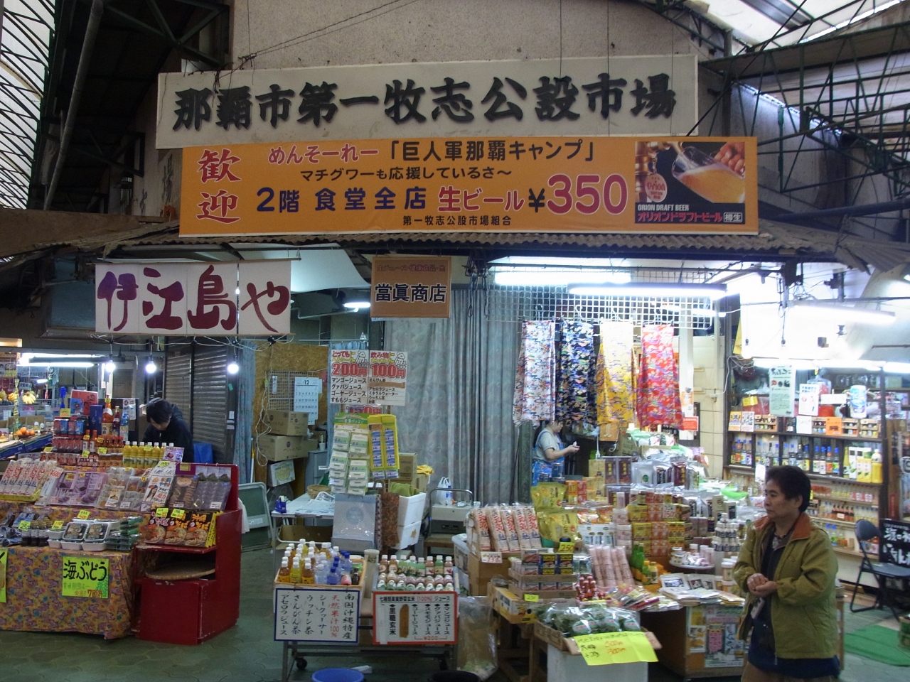 那覇市内の平和通り沿いに位置する「第一牧志公設市場」は、沖縄の台所といえるぐらい、お肉や、魚など、多くの食材が所狭しと並んでいます。