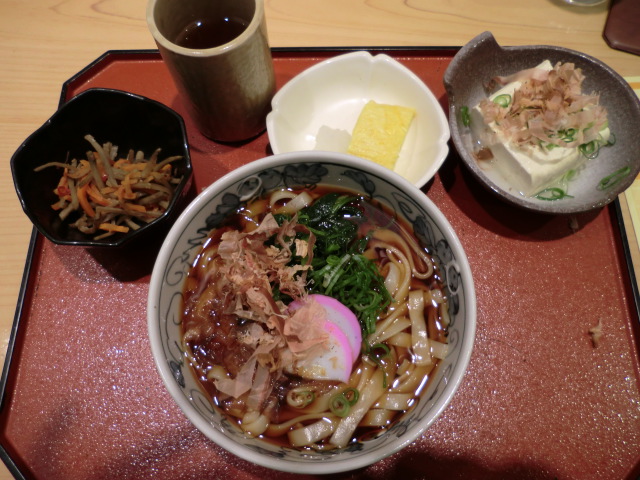 きしめん定食600円。旅先で本場のうどんを食べて感動した後だったので、きしめんは想像を超えませんでしたがほっとする味でした。冷奴と出し巻き玉子が、味・食感的に被っている気がするのでどちらかを別のもの変えたほうが飽きなくて良いと思います。ご飯がなくてもお腹いっぱいになりました。