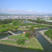 天気が良かったので、五稜郭公園にある五稜郭タワーに上りました。上に上がればこの公園が五角形であることが分かります。函館を一望できて、真下に緑がいっぱいの公園を見下ろせます。訪れた時はツツジが満開できれいでした。