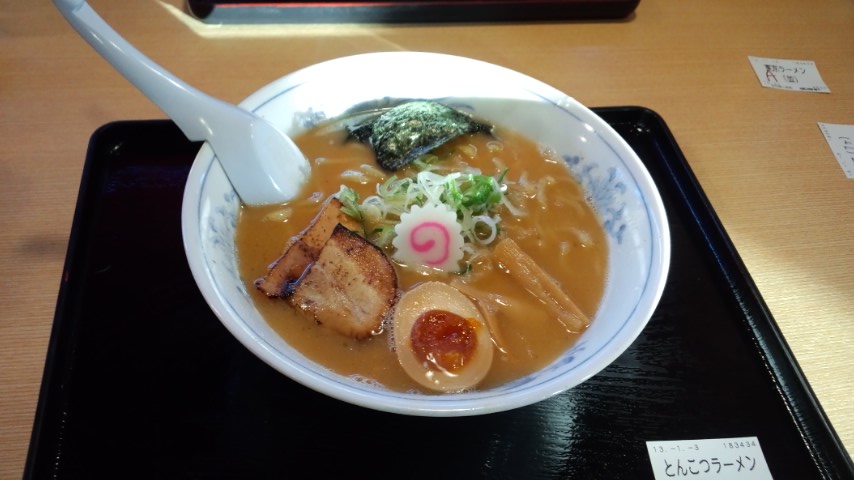 東京ラーメンは醤油味の細麺でした。とんこつラーメンは太麺で