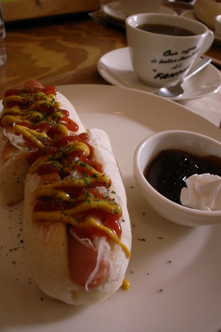 トースト、パンケーキ、ホットドックから選ぶのですが私はホットドックにしました。