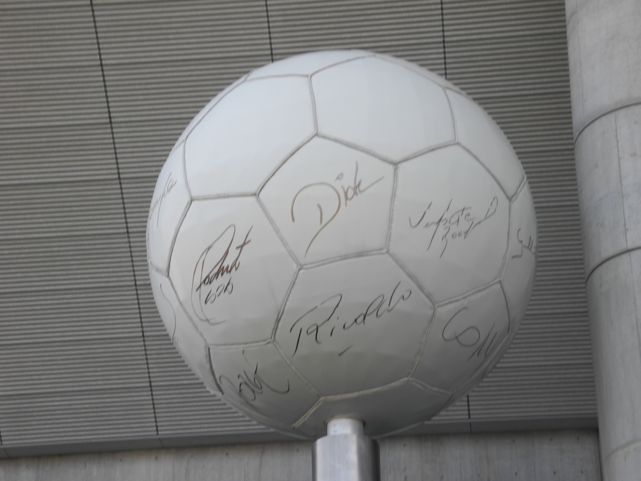 スタジアムの外に、巨大サインボールが置いて有ります。
