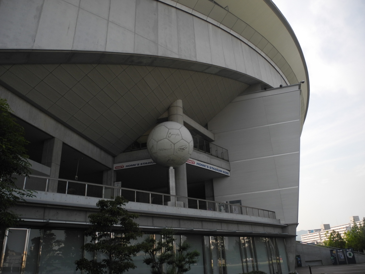 ホームズスタジアム神戸 では、スタジアムの外に、巨大サインボールが置いて有ります。このサインボールを見ているとサッカーを通じて、色々な人とのつながりを見出す事ができます。巨大ボールですが、ぜひ、一度、行った際には見てください。