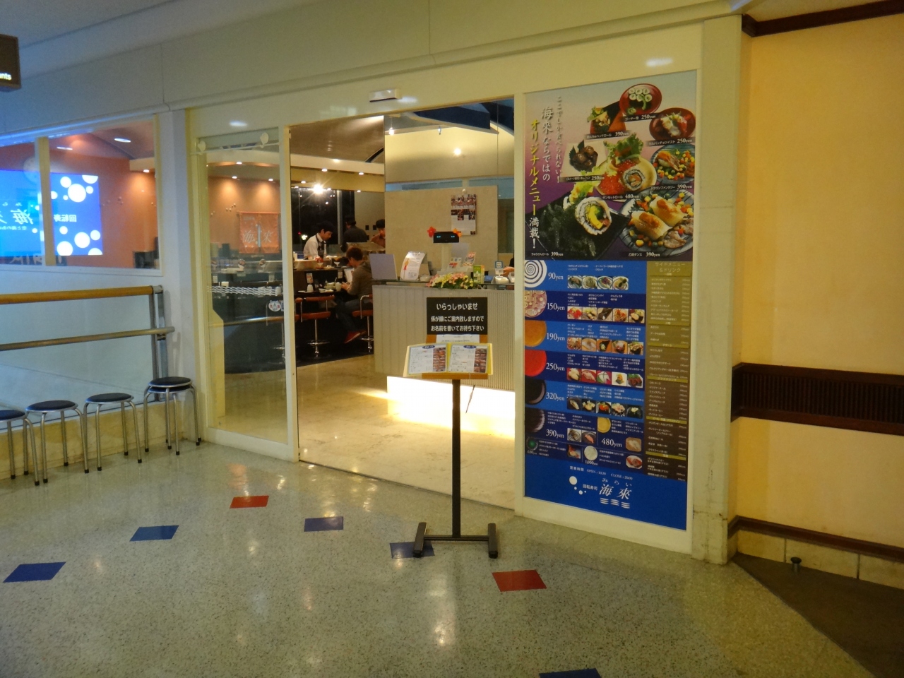 回転寿司はフライトまでの時間つぶしには丁度良く、なおかつ沖縄の寿司や泡盛など、旅行に未練がある食事を楽しむには絶好の場所です。