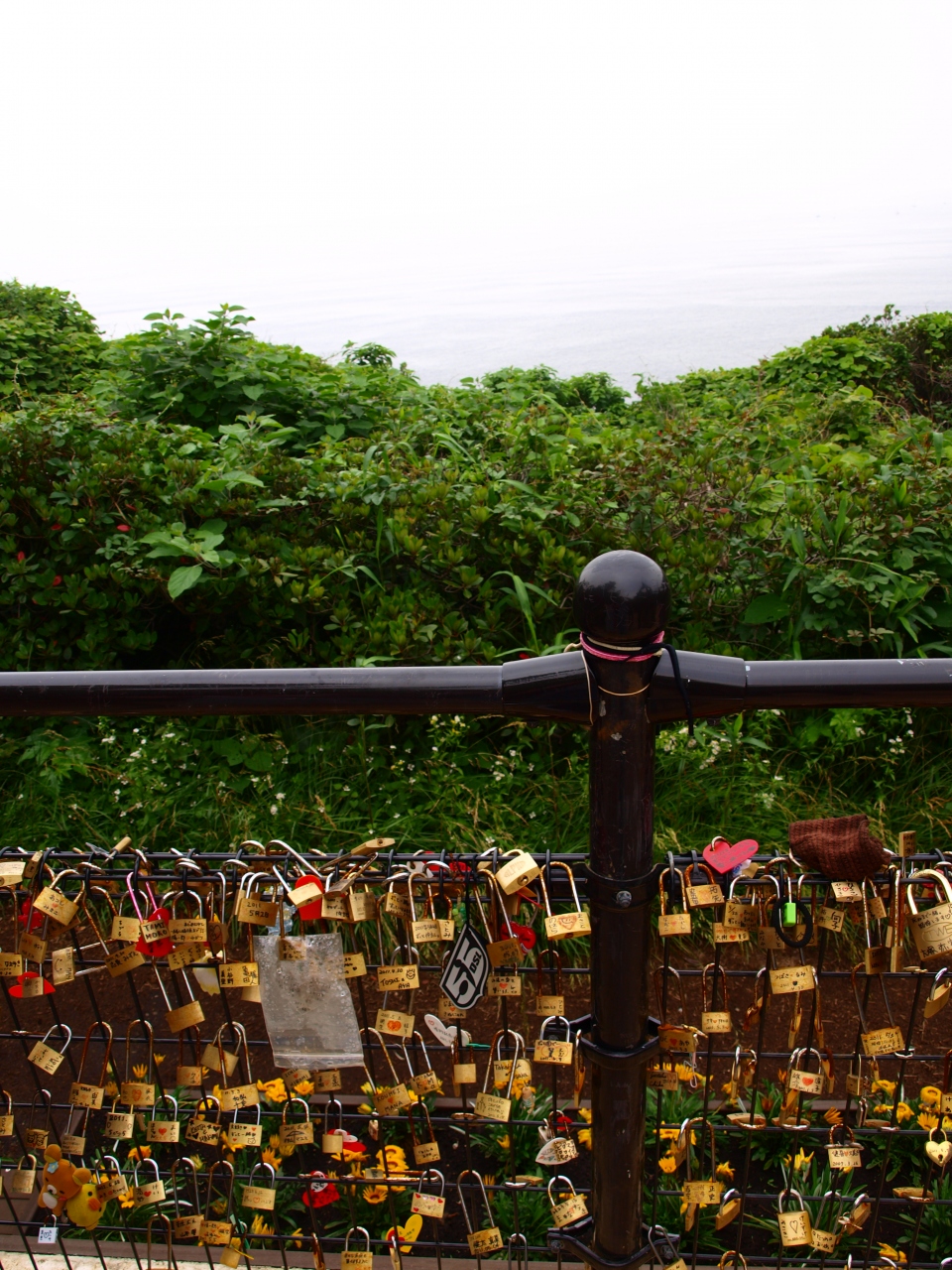 鐘の近くの柵にはたくさんの南京錠がかけられており、メッセージが書かれています