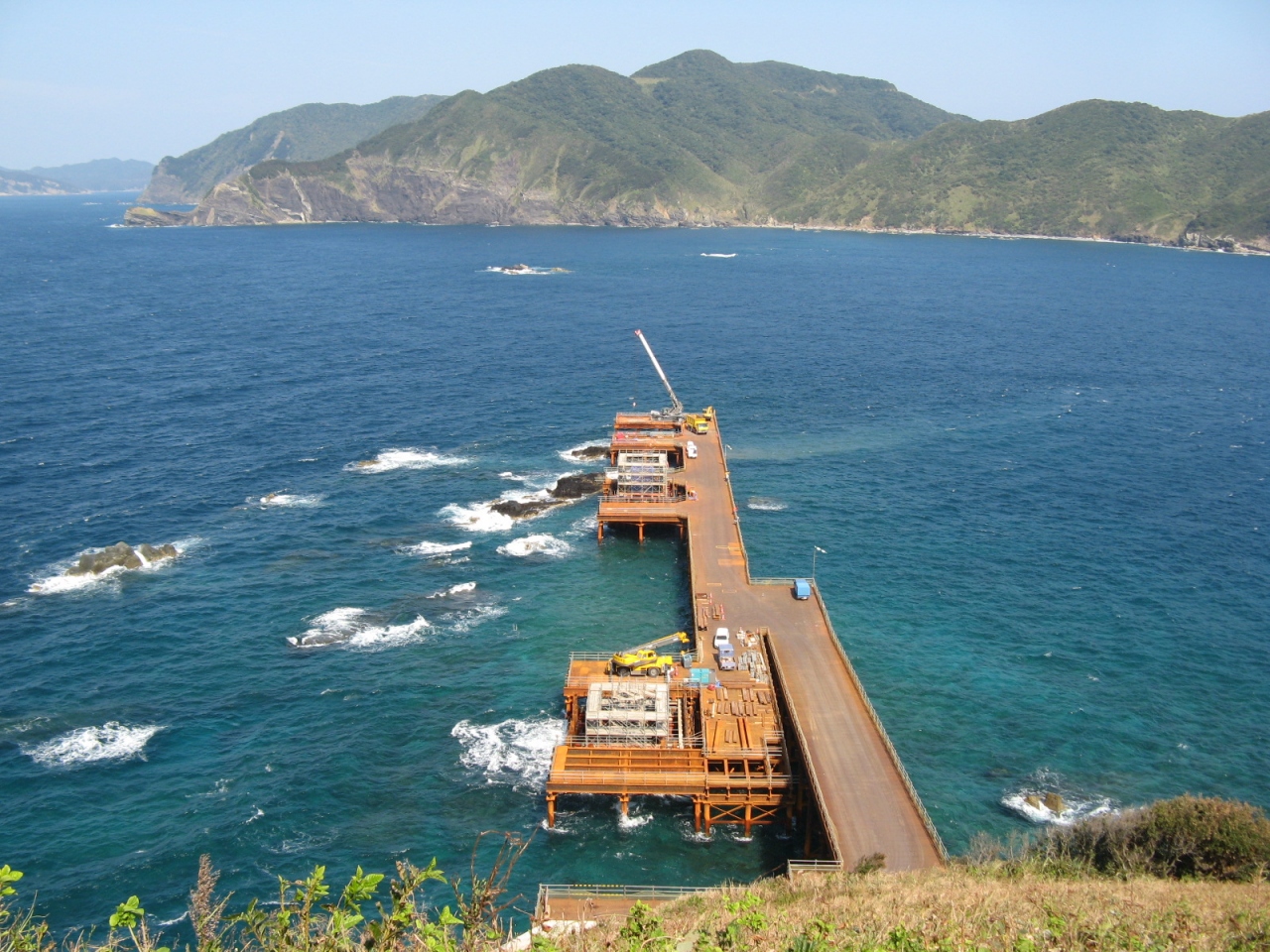 架橋工事が始まっている下甑島と中甑島の間の海峡、