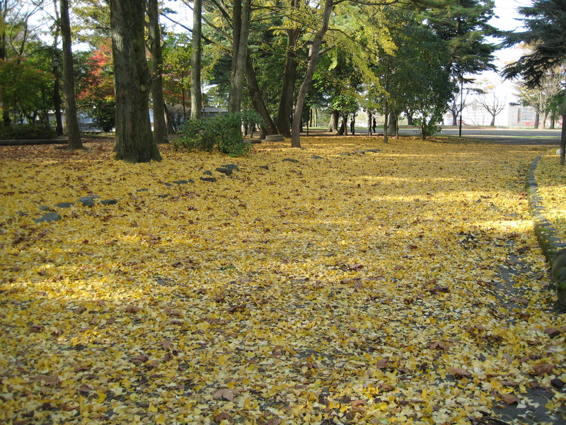 仙台市街を流れる広瀬川の東岸、ちょうど青葉山のふもとに西公園があります。(仙台の中心部から見て西にあるのでそう名付けられた)私が行った11月はちょうど紅葉真っ盛り、しかも雨上がりだったこともあり、地面にはたくさんの銀杏の葉が落ち、まるで黄色いじゅうたんのようでとてもきれいでした。市民憩いの公園といった感じのところでした。