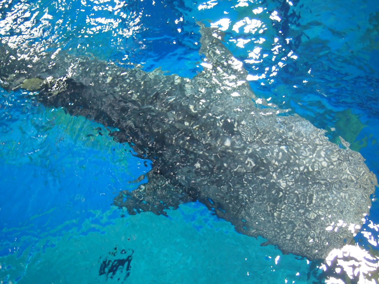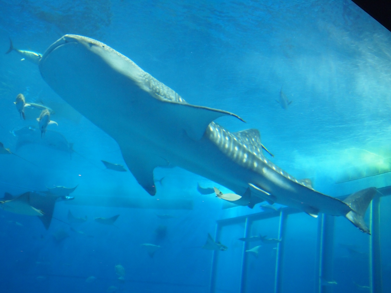 沖縄旅行2日目に美ら海水族館に行きました。世界最大のアクリルパネル「 黒潮の海」では、ジンベイザメやマンタが優雅に泳ぎ、回遊魚は力強く泳いでいました。水槽の上から見たジンベイザメの大きさには、感動しました。