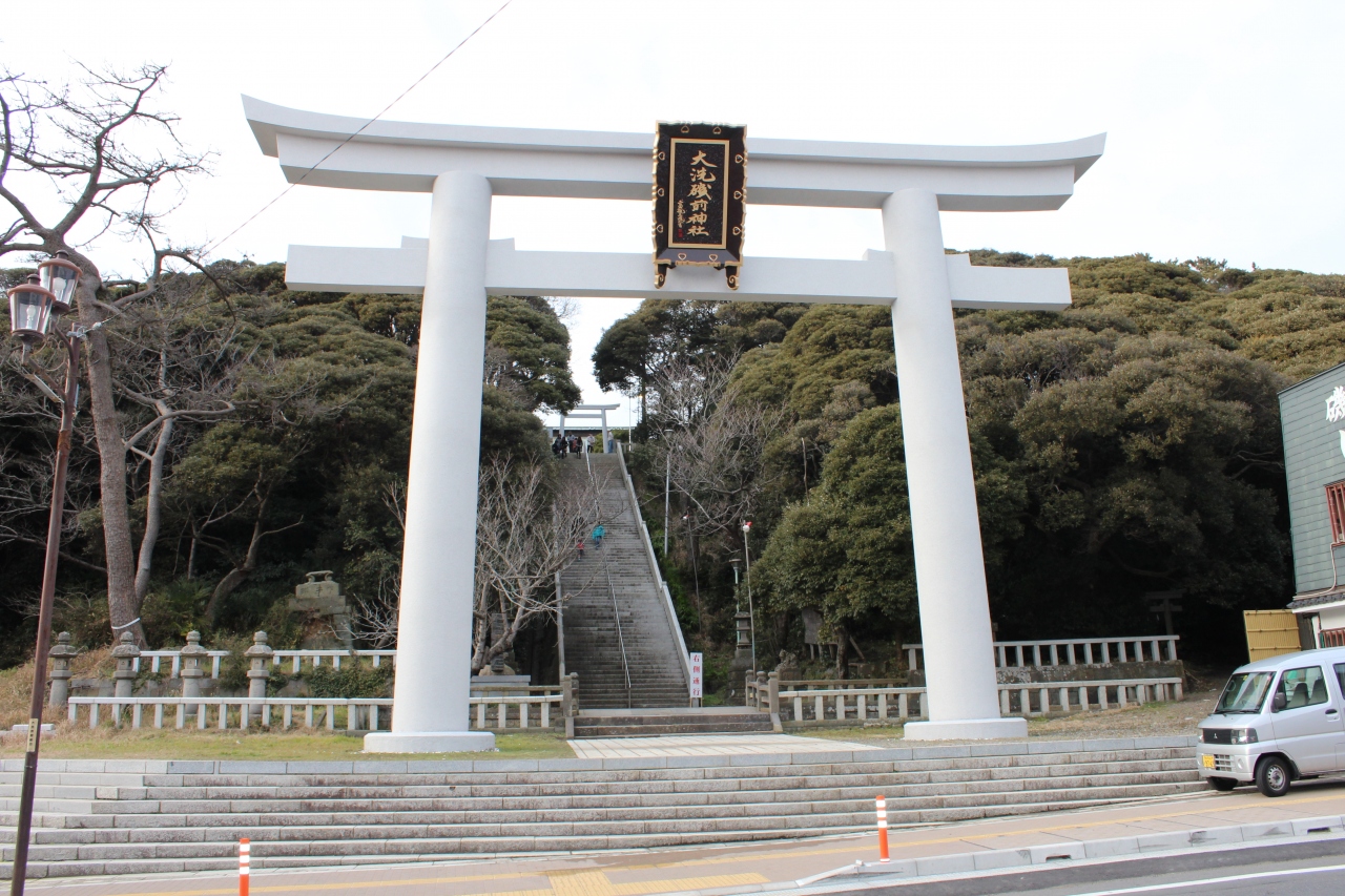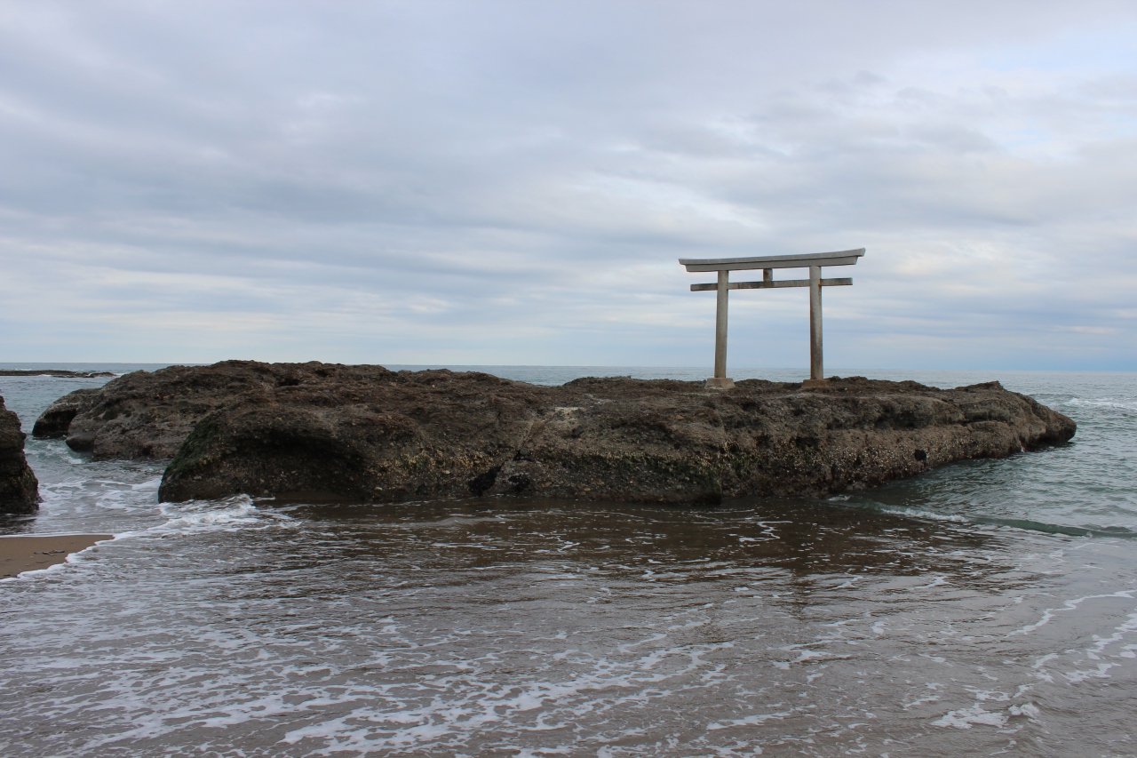 大洗の海の岩に 鳥居が ありました。大洗磯前神社の大きな鳥居のところから、道路をわたり、海岸のほうに、ちょっといったところです。