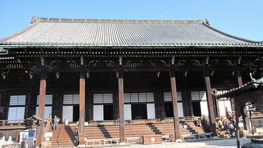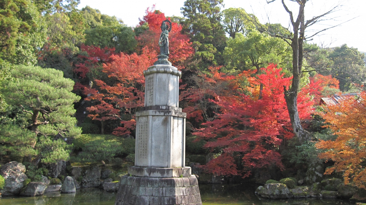 初めての京都旅行は、小倉を始発ののぞみ2号で出発し、奥さんの浄土宗総本山の知恩院(ちおんいん)を参詣することから始めました。小倉から小倉駅から新幹線・市バスを乗り継ぎ3時間40分で知恩院に到着。その寺院の大きさにびっくりしました。紅葉の季節だったので日本庭園で紅葉を楽しみました。知恩院から円山公園を抜け、清水寺を目指す途中では舞妓さんの撮影風景を見かけました。