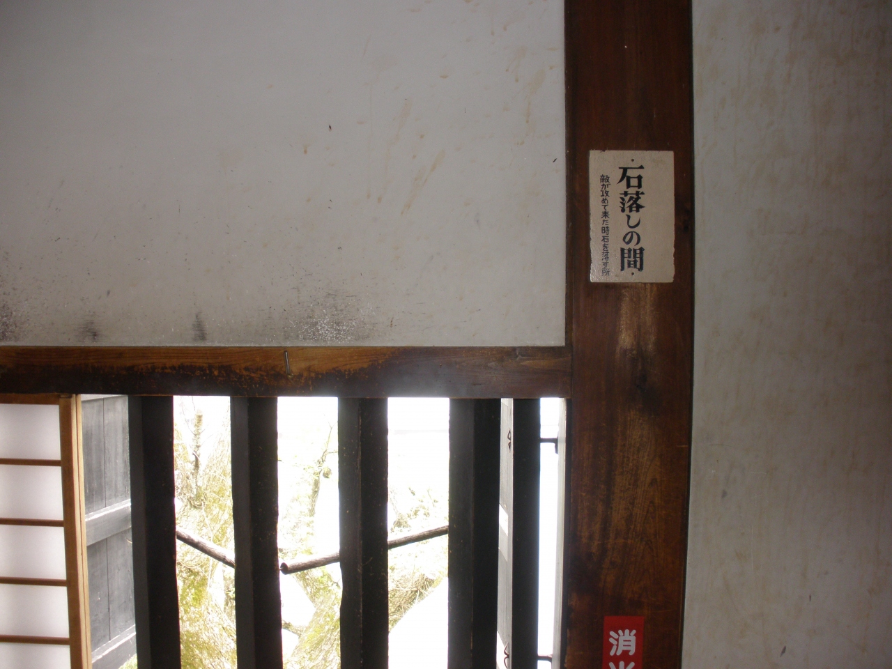 途中に屏風や鎧などの展示品を見たり、石落しの間から外を覗いたりしつつ最上階の高欄の間へ。