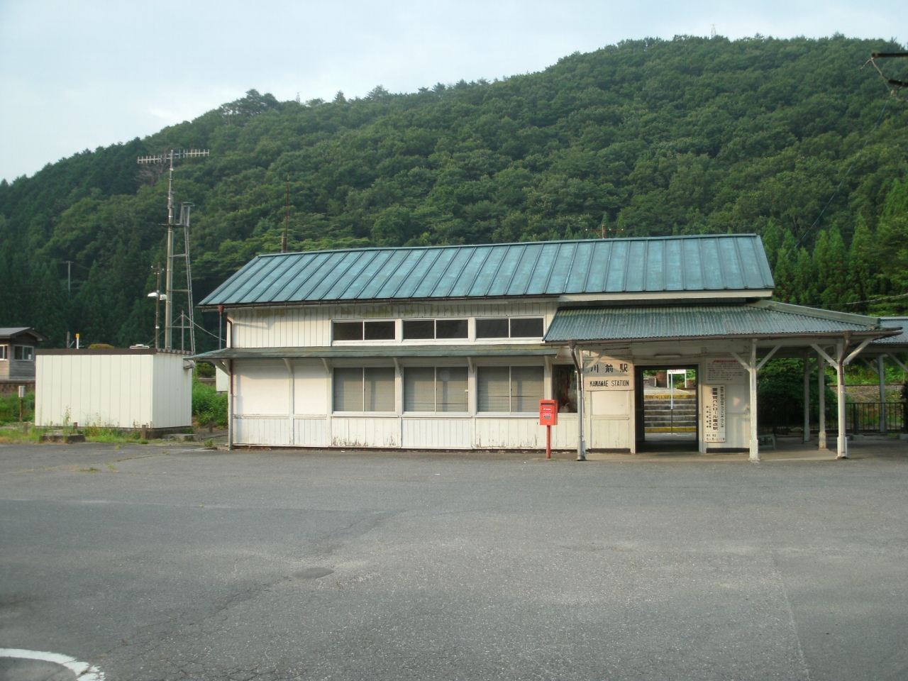 山間の美しい区間を、夏井川と寄り添うように走っている磐越東線。車窓のみどころはこの駅周辺です。美しい自然の中に、駅舎もじつにいい雰囲気。駅舎を目的にたずねるのもいいかもしれません。駅前すぐのところを夏井川が流れています。