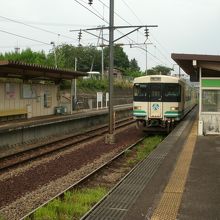 阿武隈急行の駅ですが、この駅で折り返す列車も設定されている中で、駅舎もなくホームだけの駅になっています。高架上にある駅が多い中で、ここは駅前から階段を降りたところにホームがあります。折り返しの電車が止まっていることもしばしばです。