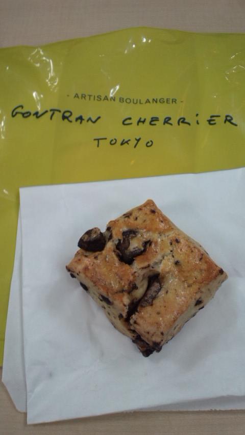 初めて行くパン屋さんではお約束のクロワッサンと、とっても美味しそうに見えたチョコチャンクスコーンを購入。 クロワッサンは写真撮る前に食べちゃってスミマセン…。 しっとりと、バターの香りが香るとっても美味しいクロワッサンだったので、これを買いに行くだけでもまた行きたいな。 チョコチャンクスコーンは、これでもかっ!ってくらいチョコが入ってて、スコーン生地もう少し欲しい…と今までに感じたことのない感覚…というくらいチョコが入ってました。