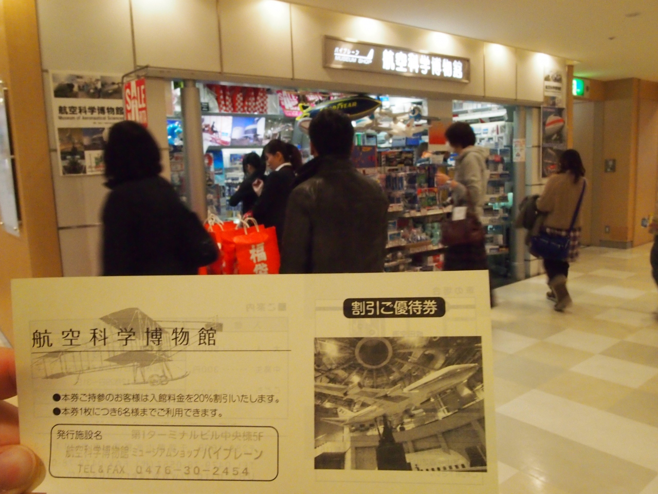 成田空港に隣接されている、航空科学博物館に行かれる予定がある方は特に、このお店は要チェックです! レジところに博物館の入館割引券が置いてあるので、無料でもらえます。 割引券は、20% offなので、大人500円→400円になりました!