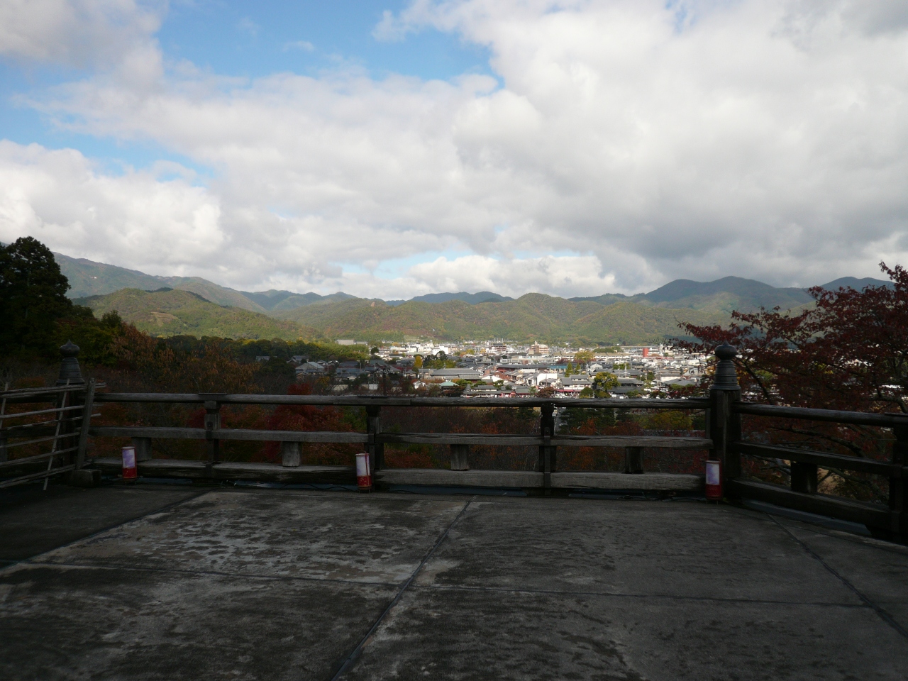 社殿右手の舞台(展望台)からの嵐山・嵯峨野の展望は見事です。