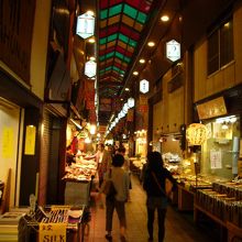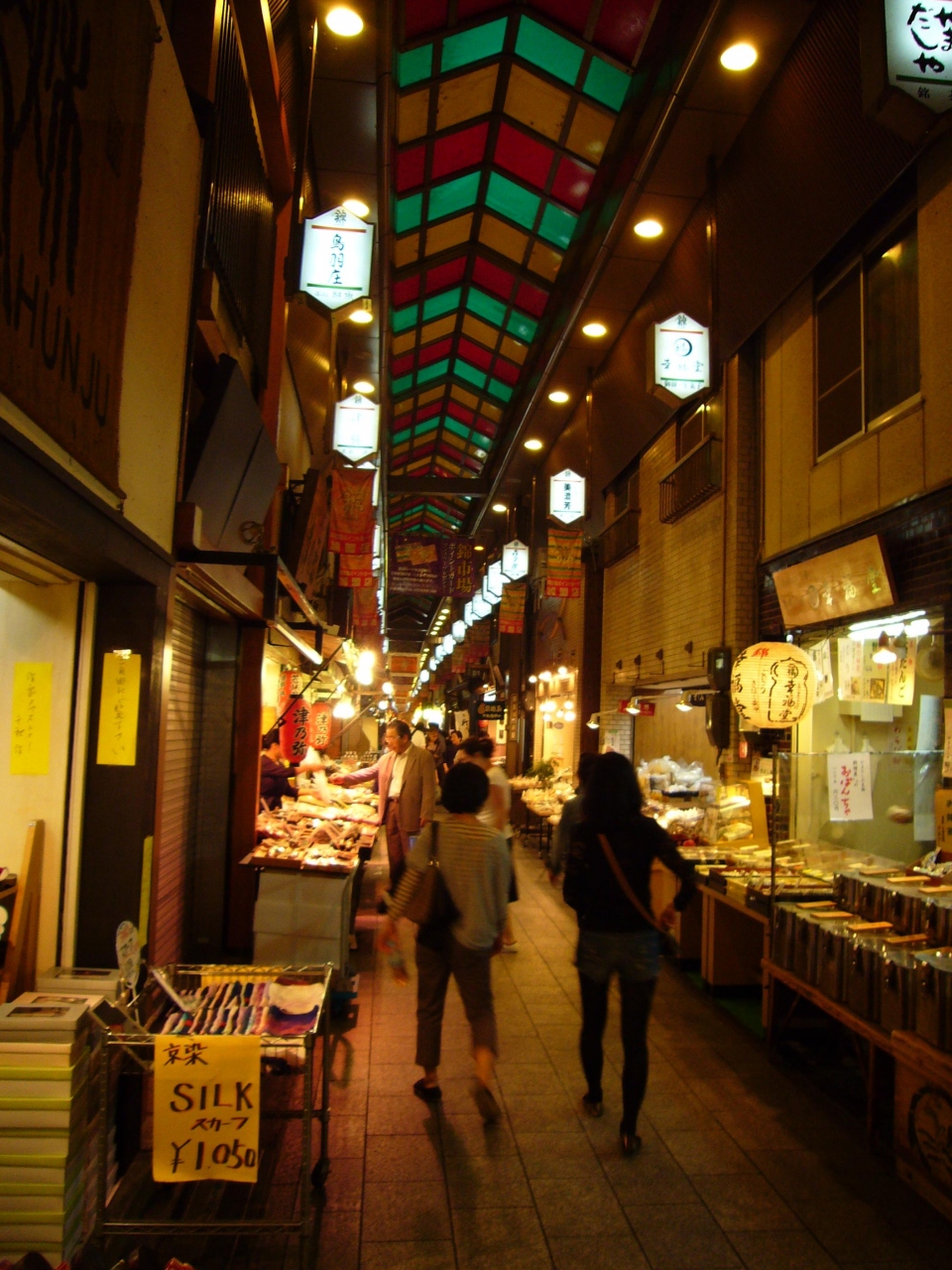 観光地化した市場って感じで道は狭く、おまけに紅葉のシーズンということもあり、たいへんな人ごみだった。通路が狭くお店同士がひしめきあっていて店頭に商品が並べられているので、足をとめて眺めている観光客がたくさんいて、なかなか前に進めないという感じ。 しかし、京都ならではの京野菜、お漬物に、うなぎ、お茶など見ているだけで食欲が刺激され、良い香りがあちこちから漂ってきて様々な誘惑にかられ、お土産を何にしようかと迷って歩いているうちに、2往復もしてしまった。
