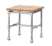 例えば、スチール製チューブ(ガス管?水道管?)とチーク古材を使った「チューブスツール」。