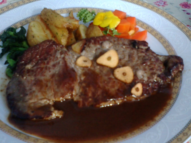 お正月は混んでいるだろうと思い、少し経ってからの平日に娘とランチに出掛けました。平日の楽しみはこの<週替わりランチ:¥1050>で、とても楽しみでした。今週は<ステーキ>だそうです。このメインの他にカップスープ(オニオンスープでした)、ミニサラダ、チョイスできる飲み物(コーヒー、紅茶、ハーブティー)が付いているので、とてもお値打ちだと思います。ケーキもお勧めです!今回も食べたのですが、写真を写すよりも先に食べてしまいました。お勧めの時間帯はランチ開始直ぐか、少し遅く(13:30過ぎ)に行くと混んでいません。