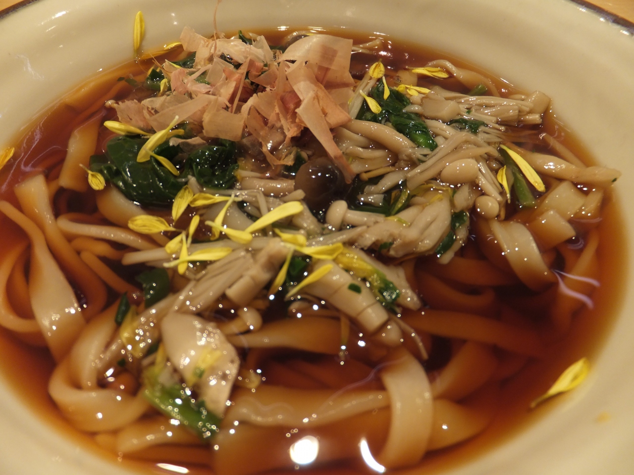 醤油味のだしのきしめんは、さっぱりした味付けなのに、こくがあってとても美味しく感じました。