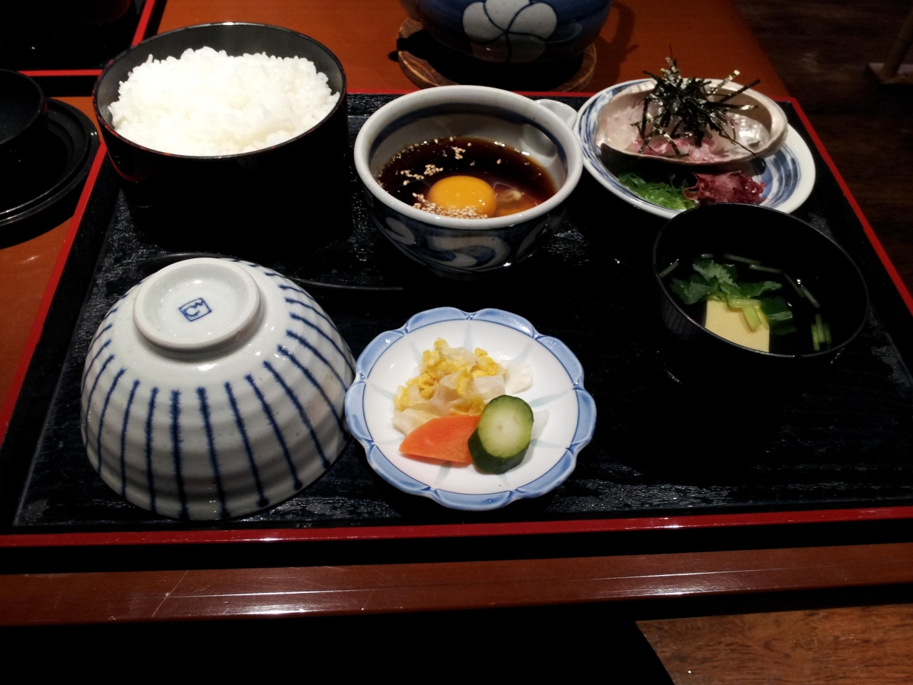 ここのは、刺身をごはんに乗せ、生たまごを漬け汁のようなだしのよく利いたしょうゆでかき混ぜていただきます。味は絶対後悔しません。