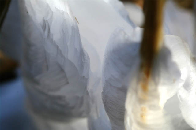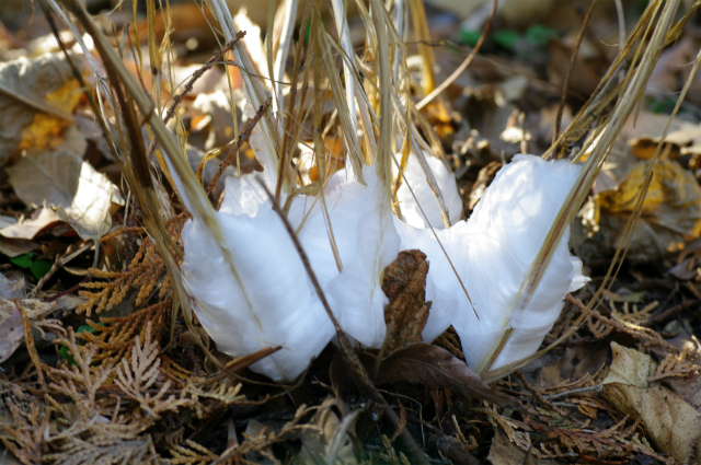 冬の氷点下となるある一定時期にしかみれない「シモバシラ」の氷柱が昭和記念公園で見ることができます。花木園展示場の前と水鳥の池側の散策路などで見れますが、一番量も多く、最後まで見れるのが、こもれびの丘北斜面中央辺りの散策路沿いです。一つとして同じものがなく、暖かくなると融けてしまうので、朝早くがお薦めです。また氷点下となっても時期が過ぎると見れませんのでWebサイトでチェックしてから行きましょう。