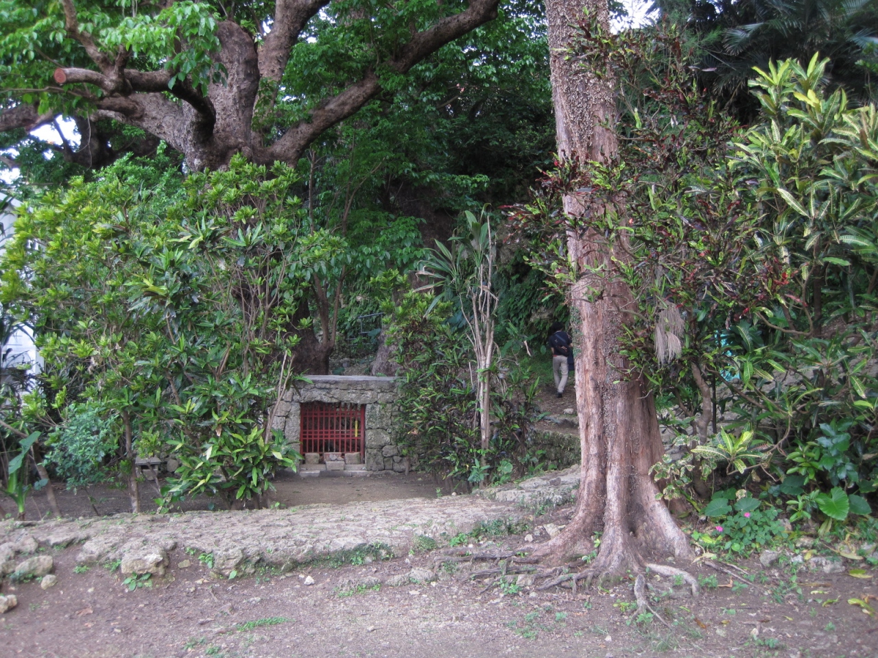 「琉球国由来記やその他の史書によると、340余年前豊かな森だったこのあたりで、村人が通る度に霊気を感じるので、これはただごとではないと時の王府に願い出て拝所を置き、神々と王府との交流の場となる。王府解体後は個人信仰にゆだねられています。」