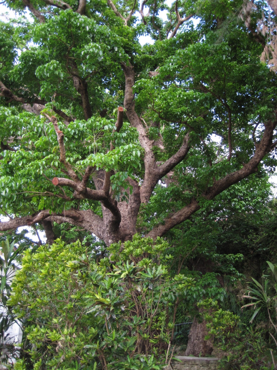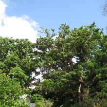 最初に訪れたときにも、安心感というか、ここにずっといたいという気持ちになった場所です。首里の坂道の途中の住宅地の道しるべに沿って行くと、ぽっかりと大きなアカギと他の木々だけが茂る空間があります。オオアカギにぺたりと手のひらをくっつけたり、抱きついてみると、何かあたたかいものが伝わってくる気がしました。