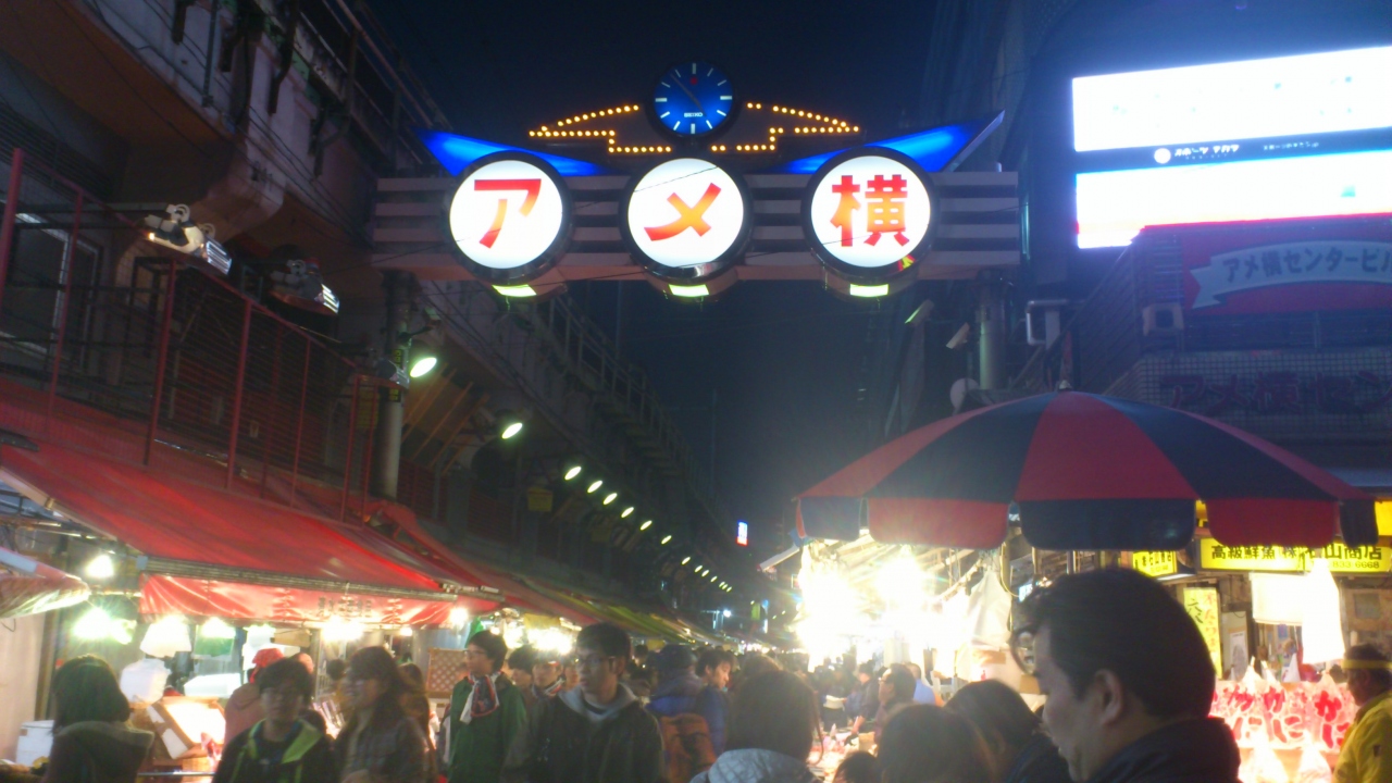 上野駅から歩いてすぐのところにある商店街。人ごみもすごいですが、店の人たちの活気もあふれています。年末になるとカニなどのお正月商品を求めてもっと多くの人たちが訪れることでしょう。名物のたたき売りは必見です。