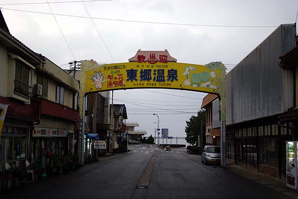 東郷湖のほとりの東郷温泉。倉吉から列車に乗り、となりの松崎駅で降りて東に数分歩く。