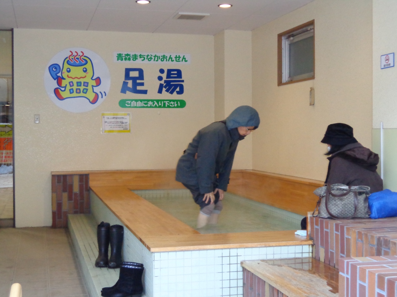 青森駅から歩いてすぐの青森まかまち温泉の外側に