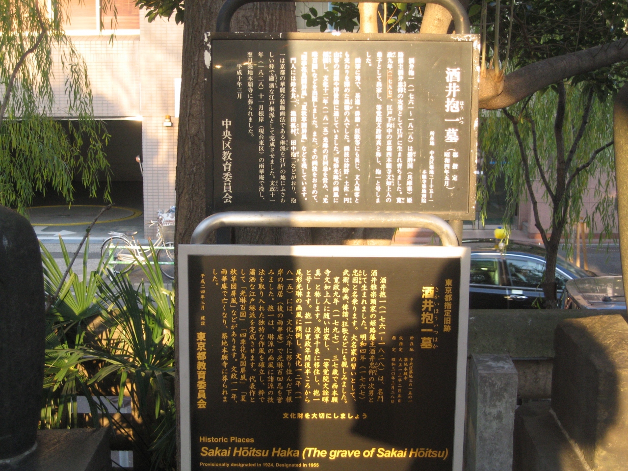 築地本願寺の境内にお墓があります。正門を入って左の奥です。お墓自体は小さいのですが、有名な絵師で、数々の功績がありました。