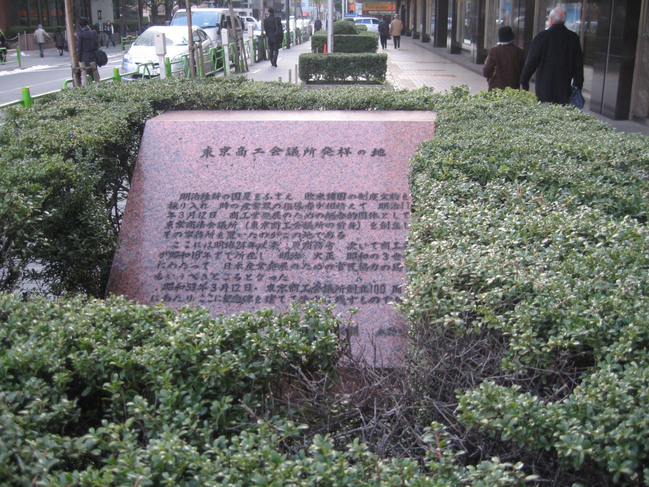特に外国貿易振興のための商工業者の組織が必要とされ、1878(明治11)年、この地に「東京商法会議所」が設立された。これが後に「東京商工会議所」となります。初代会頭は 渋沢栄一氏です。