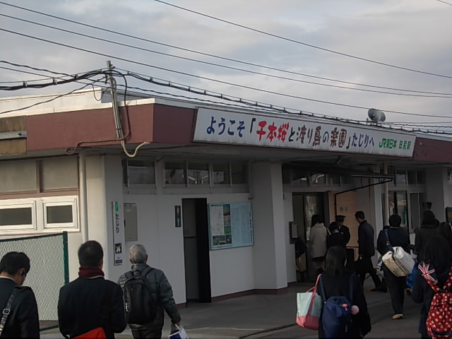 この駅は、駅の改札付近にも大きく掲げられている通り、千本桜と呼ばれる桜の名勝や、渡り鳥の中継地として名高い湖沼があることで知られているエリアで、3つ隣の新田駅などと共に、バードウォッチングがお勧めな駅です。鳥に詳しくなくても、時期によっては餌を啄ばむちょっと見慣れない鳥などを確認することができますので、駅に下車する時間がなくても、車窓から湖沼や田んぼの付近を、是非色々と探してみて下さい。