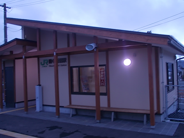 東北本線上の駅は、味気ない平屋風の駅舎があると思えば、ちょっとユニークな駅舎に目を奪われたりする駅も多くて、車窓からのドラマティックな駅舎展開が見逃せない(と個人的には思っている)路線なのですが、この陸中折居駅もそんな駅舎に注目してしまう駅の一つです。スタイリッシュな左右非対称な屋根の形の駅舎は、私のような北海道民的には、何となく胆振地域や石狩南部によく見られる駅との類似点を感じて、とても親近感が沸いてしまう駅です。