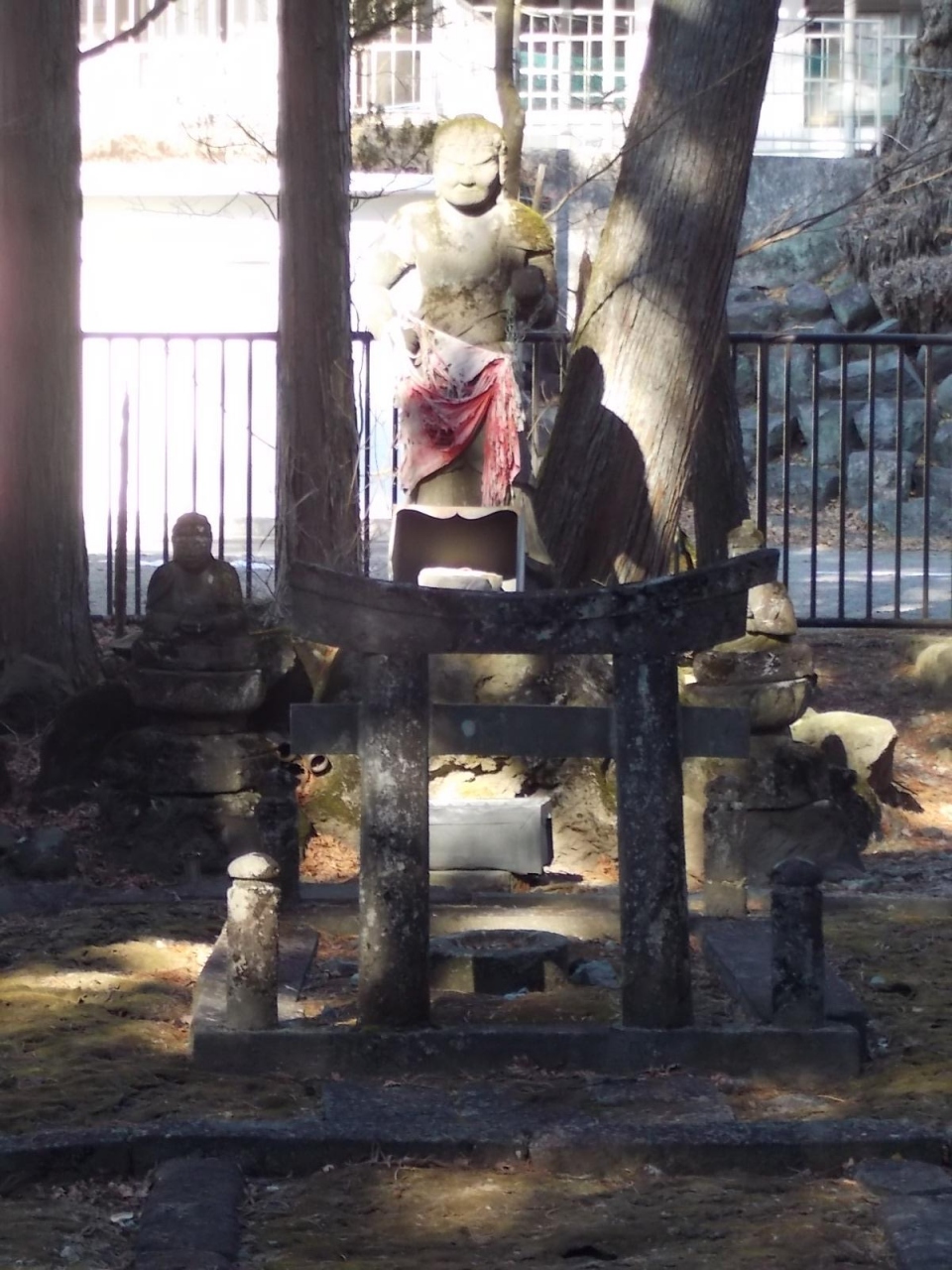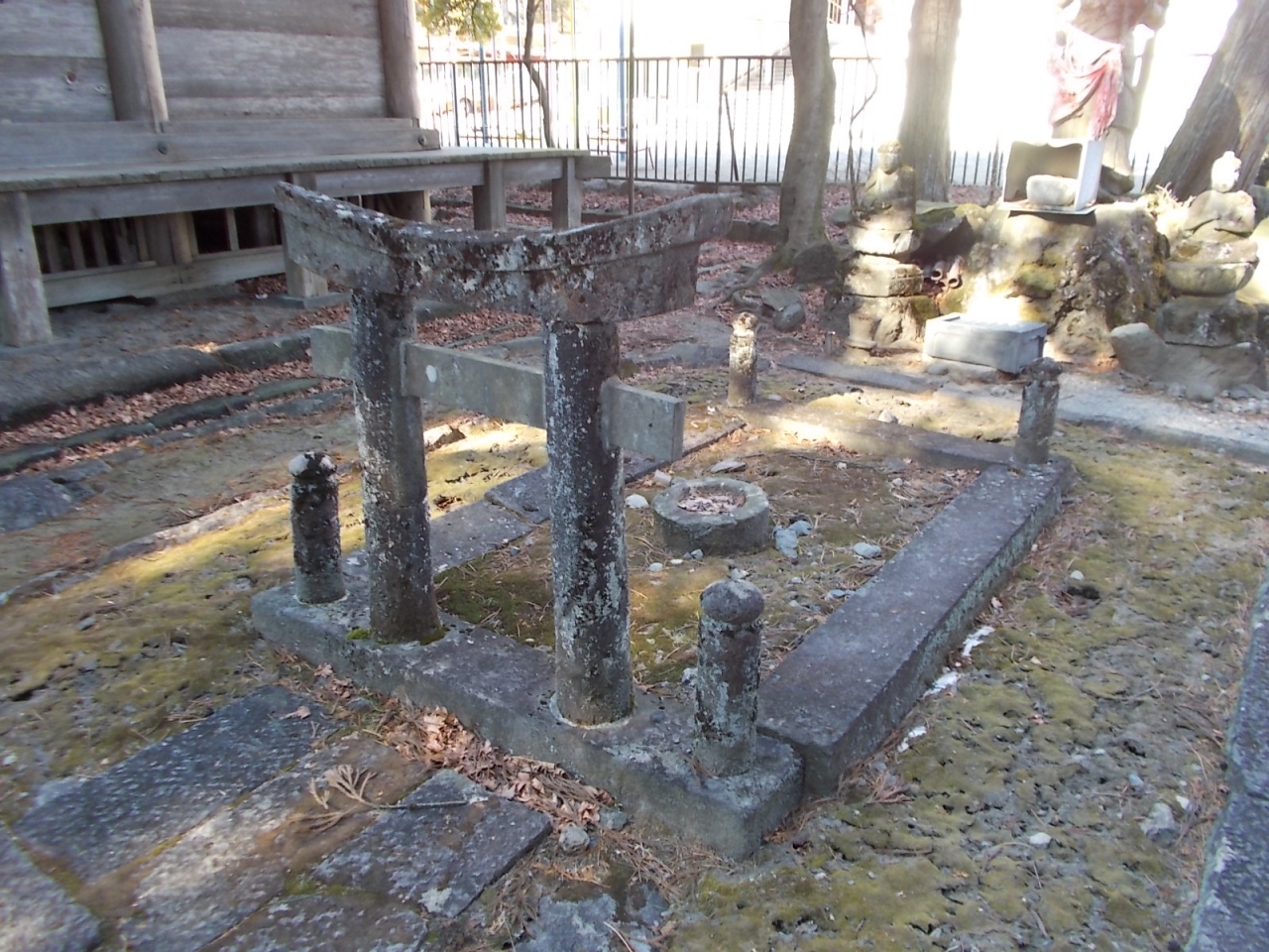 護摩壇と不動明王(写真添付) ;日光修験の修行の遺跡、三重塔と観音堂の間にある。
