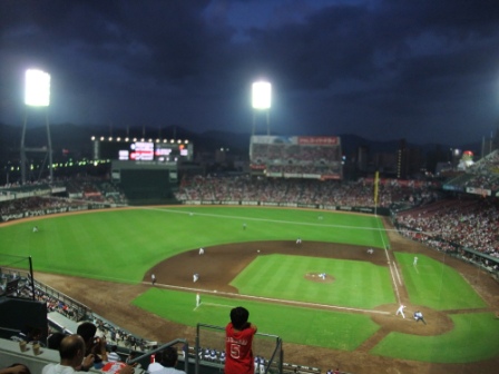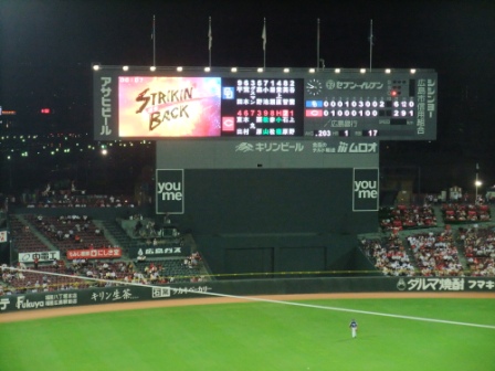 カープの新本拠地である「マツダスタジアム」でドラゴンズ戦があったので、観戦しました。新しく天然芝の屋外スタジアムなので、気持ちよく観戦できました。試合は中日ドラゴンズが勝利しました。