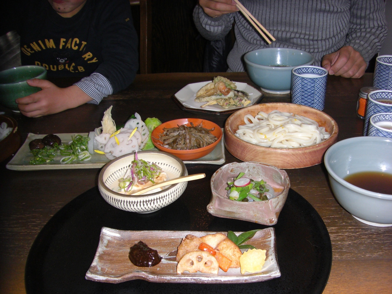 銀閣寺へ行った後、昼食で立ち寄りました。麺にしては値段は少々高目ですが、つるつるしこしこの麺に、タップリの薬味を入れて食べるうどんはとても美味しかったです。季節セットというものにすると、酢の物、豆乳温奴ともう1品がついてボリュームがあります。