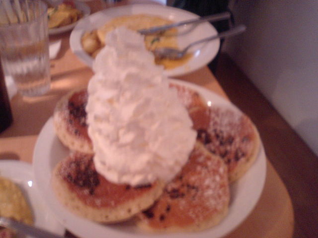 パンケーキ、見た目ほどがっつりでなく生クリームふわふわで