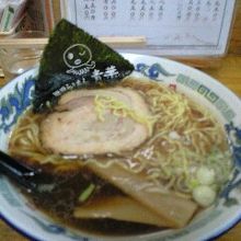 チャーシューはやや脂があるバラ肉。スープはあっさりの魚介系です。