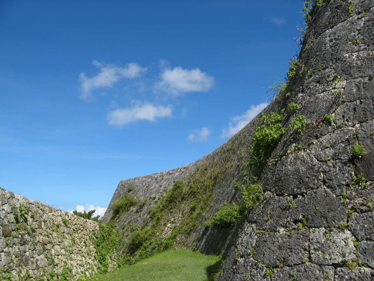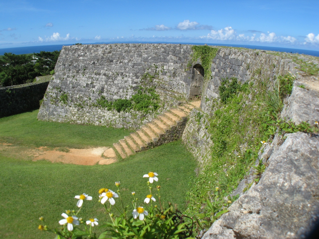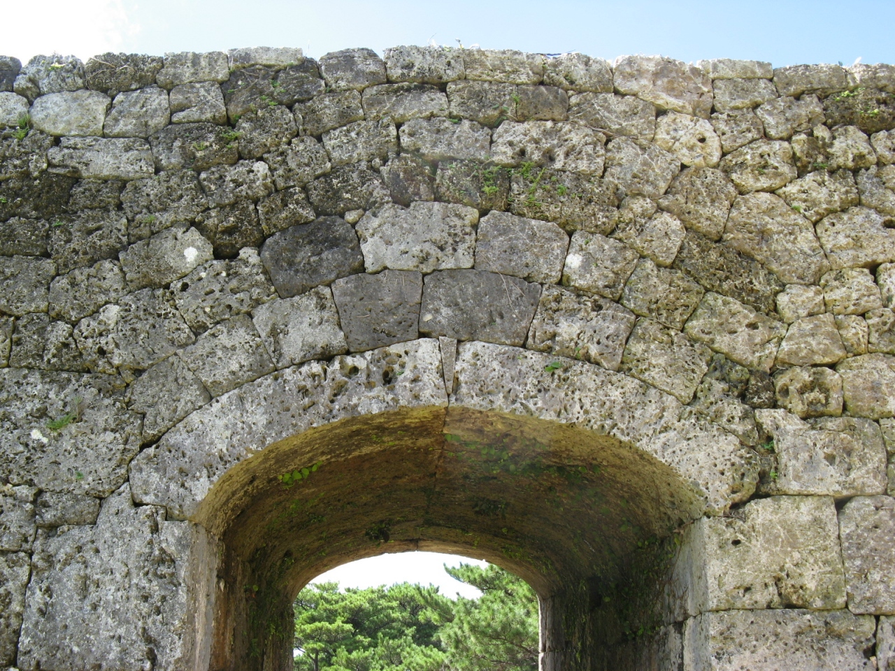 那覇から国道58号線を通って車でおよそ1時間、読谷村のほぼ中央に「座喜味城跡」があります。座喜味城は、15世紀初期に築城家として名手だったといわれる護佐丸(ごさまる)によって築かれたと伝えられています。規模はそれほど大きくは無いのですが、石垣のアーチ門や城壁の曲線が見事です。現在、城の頂上は礎石の様なものがあるだけで、広場のようになっていました。頂上からの景色は絶景で、残波岬、恩納村の海岸、遠くは那覇市や慶良間まで見ることができました。近くに来られたら、天気が良ければ、是非、訪問されることをお奨めします。