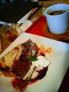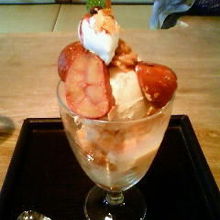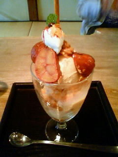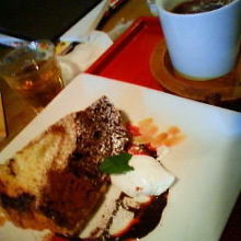 季節のパフェ(この季節は栗のパフェでした)と、豆乳とマーブルチョコのシフォンケーキを戴きました。